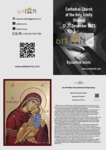 From 12 December 2025 to 21 December 2025, artION participates with one icon from its workshop, in the International Anniversary Iconographic Exhibition group exhibition in Vienna, Austria, entitled: “Looking at the Light”.